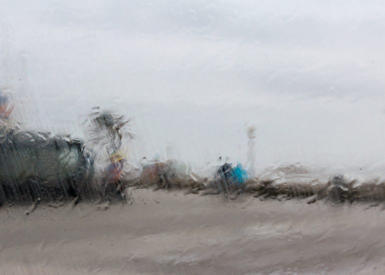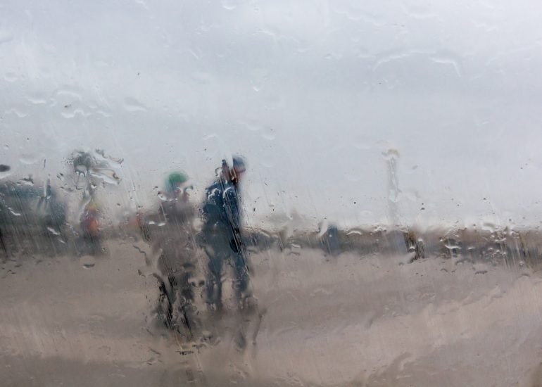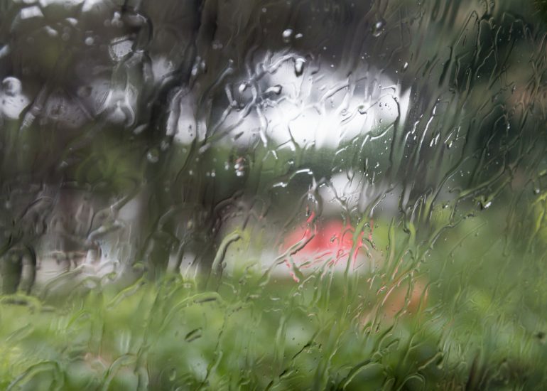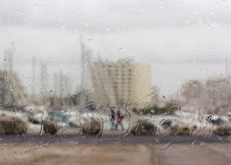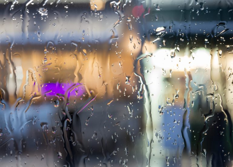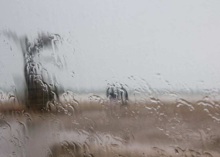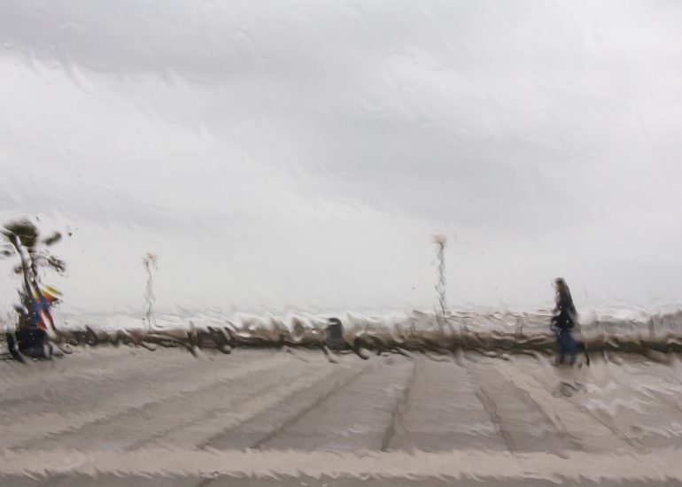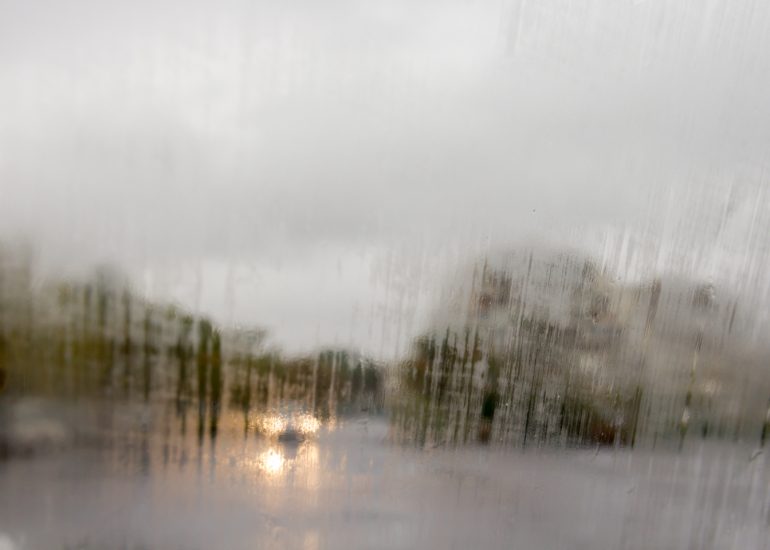 Une vitre, la pluie qui tombe, le vent, la buée …